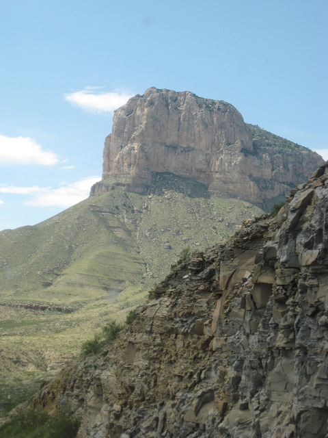 After the Carlsbad tour, we set off directly for the next stop - dinner in Alpine, Texas. We had thought we might go check in in the hotel in Marfa, first, but due to some navigational issues we initially went the wrong way and had to make up time. Although it was a happy accident, as otherwise we wouldn't have gone past Guadalupe Mountains National Park, with its amazing formations, such as this one.