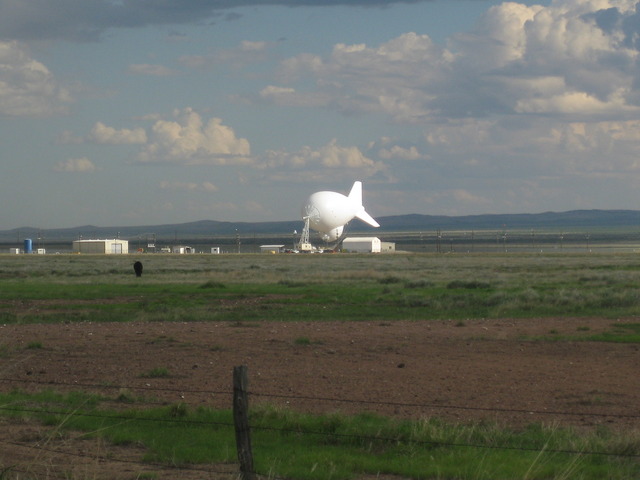 Alison noticed as we drove past a subtle sign that said "U.S. Air Force". After some googling, we discovered this is a drug trafficker surveillance blimp. We were just lucky to see it on the ground instead of floating up high looking for illegal plane flights.