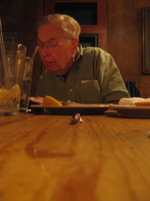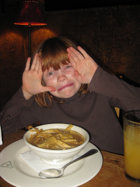 Here's Cielo with her soup, and Granddad kindly paying the check later.
