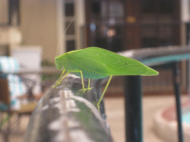 We didn't get to swim at this hotel, but some of us got to visit the pool, where Alison took this picture of a leaf bug on a railing.